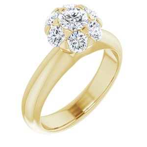 14K Yellow 1 1/5 CTW Diamond Cluster Engagement Ring