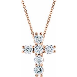 14K Rose 1 3/8 CTW Diamond Cross 18" Necklace
