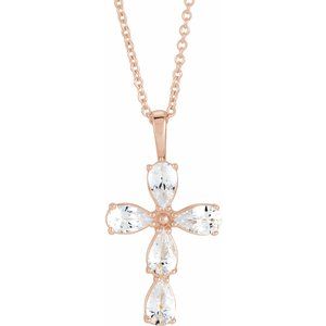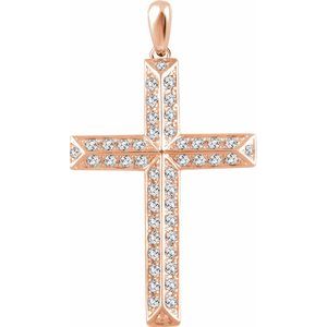 14K Rose 1 CTW Diamond Cross 16-18" Necklace