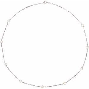 Sterling Silver Freshwater Cultured Pearl Station 7" Bracelet