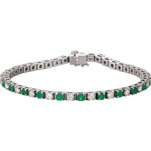 Platinum Emerald & 2 1/3 CTW Diamond Line 7" Bracelet