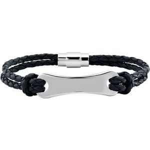 Dark Brown Leather & Stainless Steel 8.5" Bracelet