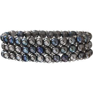 Sterling Silver Freshwater Cultured Grey Pearl 3 Row Stretch Bracelet