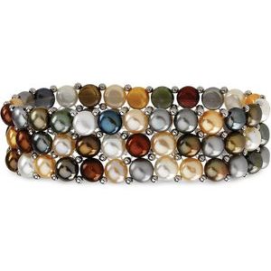 Sterling Silver Freshwater Cultured Multi-Colored Pearl 3 Row Stretch Bracelet