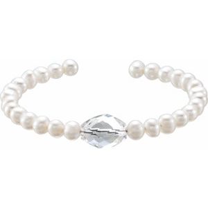 Sterling Silver Freshwater Cultured White Pearl 3 Row Stretch Bracelet