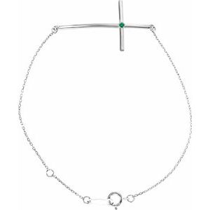 Sterling Silver Imitation Emerald Sideways Cross Bracelet