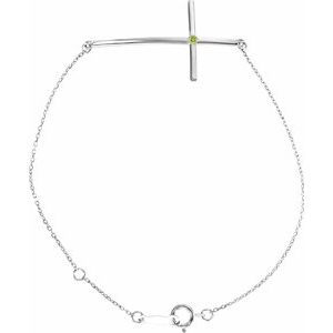 Sterling Silver Imitation Peridot Sideways Cross Bracelet