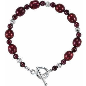 Sterling Silver Rhodolite Garnet & Freshwater Cultured Pearl 7.5" Bracelet