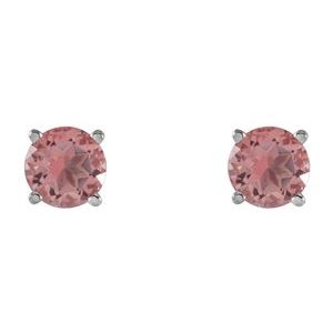 1874 / 14K White / Set / Round / Baby Pink Topaz / Pair / 5 Mm / Friction Post / Friction Backs Included / 4-Prong / Polished / Light Basket Solitaire Stud Earrings