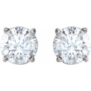 1874 / 14K White / Set / Round / Diamond / Pair / 5Mm :: 1 Ctw / I2, G-H / Friction Post / Friction Backs Included / 4-Prong / Polished / Light Basket Solitaire Stud Earrings