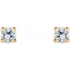1874 / 14K Yellow / Set / Round / Diamond / Pair / 5Mm :: 1 Ctw / I2, G-H / Friction Post / Friction Backs Included / 4-Prong / Polished / Light Basket Solitaire Stud Earrings