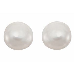 19261 / Set / 14K Yellow / Cultured White Pearl / Pair / Without Box / Polished / Youth Button Pearl Earrings With Backs
