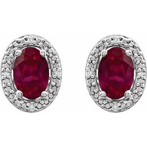 Sterling Silver Created Ruby & .025 CTW Diamond Earrings