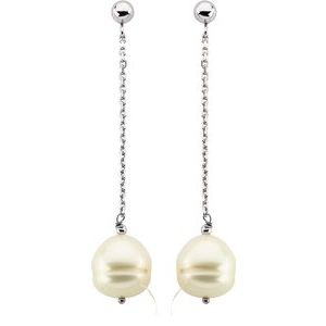Sterling Silver 9-11 mm Freshwater Cultured Pearl Dangle Earrings