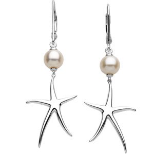Freshwater Cultured Pearl Starfish Lever Back Earrings