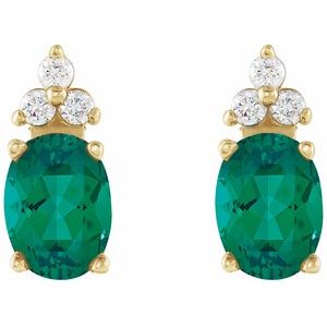 67107 / 14Ky / Pair 07.00X05.00Mm/ .06 Ct Tw / P / Emerald And Diamond Earrings