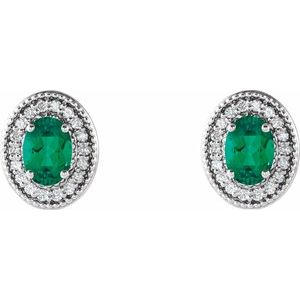 86630 / Set / 14K White / Lab-Created Emerald / 6 X 4 Mm / Pair / Polished / Genuine Emerald And 1/5 Ctw Diamond Earrings