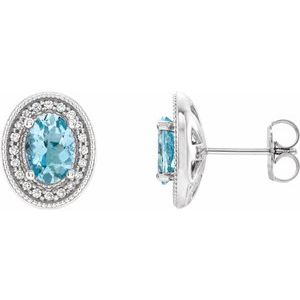 Sterling Silver Blue Sapphire & 1/5 CTW Diamond Halo-Style Earrings