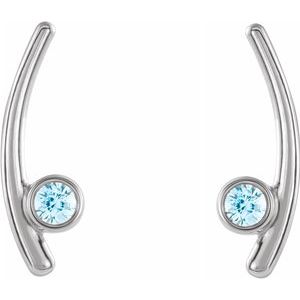 86861 / Set / Sterling Silver / Genuine Blue Zircon / Pair / Polished / Genuine Blue Zircon Ear Climbers With Backs
