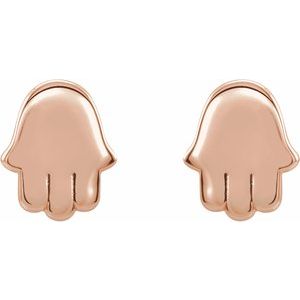 87027 / 14K Rose / Pair / Polished / Hamsa Earrings With Backs