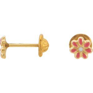 14K Yellow Enameled Flower Earrings