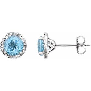 Sterling Silver Sky Blue Topaz & .01 CTW Diamond Earrings