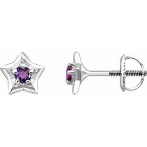 Sterling Silver 3 mm Round February Youth Star Birthstone Earrings