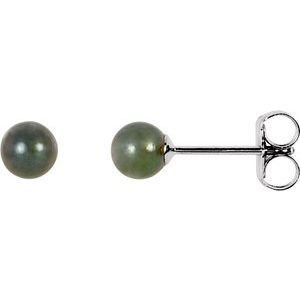 14K White 4 mm Black Akoya Cultured Pearl Earrings
