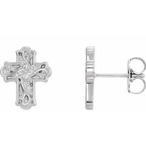 Sterling Silver Floral-Inspired Cross Earrings