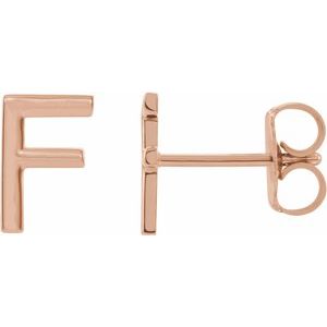 14K Rose Single Initial F Earring