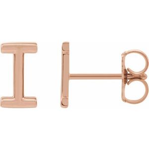 14K Rose Single Initial I Earring