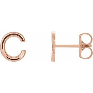 14K Rose Single Initial C Earring