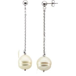 Sterling Silver 9-11 mm Freshwater Cultured Pearl Dangle Earrings
