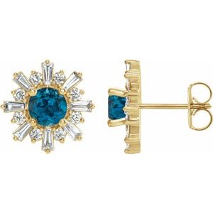 14K Yellow London Blue Topaz & 3/4 CTW Diamond Earrings