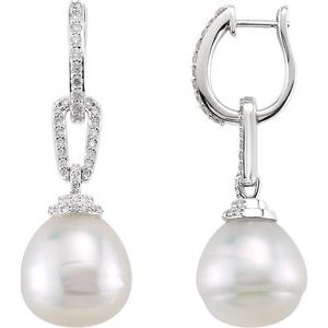 14K White 12 mm Cultured South Sea Pearl & 1/2 CTW Diamond Earrings