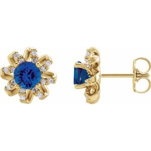 14K Yellow Blue Sapphire & 1/5 CTW Diamond Earrings