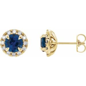 14K Yellow Blue Sapphire & 1/3 CTW Diamond Earrings