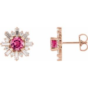 14K Rose Pink Tourmaline & 3/4 CTW Diamond Earrings