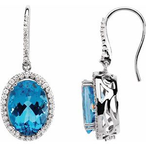 14K White Swiss Blue Topaz & 7/8 CTW Diamond Earrings