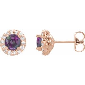 14K Rose Alexandrite & 1/8 CTW Diamond Earrings
