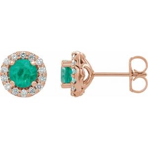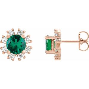 14K Rose 5 mm Round Emerald & 1/8 CTW Diamond Earrings