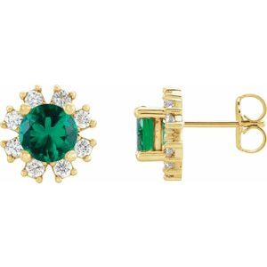 14K Yellow 5 mm Round Emerald & 1/8 CTW Diamond Earrings