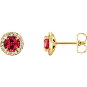 14K Yellow 5 mm Round Ruby & 1/8 CTW Diamond Earrings