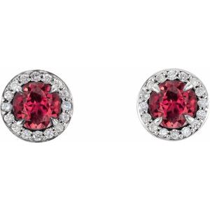 14K White 5 mm Round Ruby & 1/8 CTW Diamond Earrings