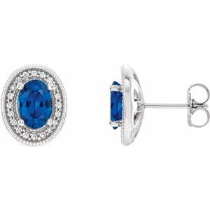 Platinum Blue Sapphire & 1/5 CTW Diamond Halo-Style Earrings
