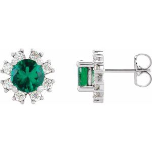 Platinum Emerald & 1/4 CTW Diamond Earrings