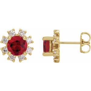 14K Yellow Ruby & 1/8 CTW Diamond Halo-Style Earrings