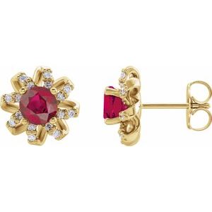 14K Yellow Ruby & 1/8 CTW Diamond Earrings