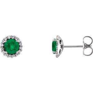 Sterling Silver Emerald & 1/5 CTW Diamond Halo-Style Earrings