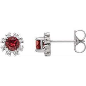 Sterling Silver Ruby & 1/8 CTW Diamond Halo-Style Earrings